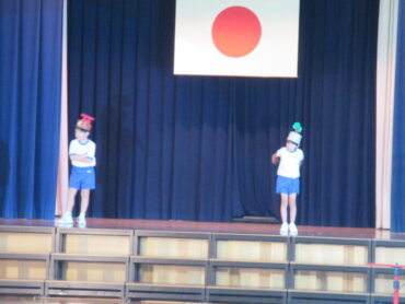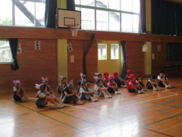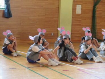 1、2年生は、劇の練習をしていました。今日は、衣装を身に付けての練習だったので、役になりきって練習できたと思います。先生からは、「もっとゆっくり、大きな声でせりふを言いましょう」とアドバイスを受けていました。
