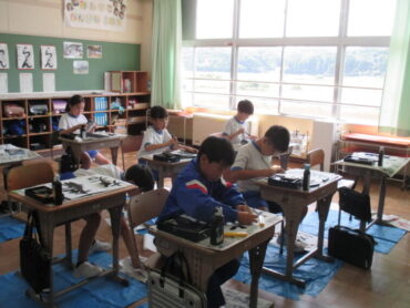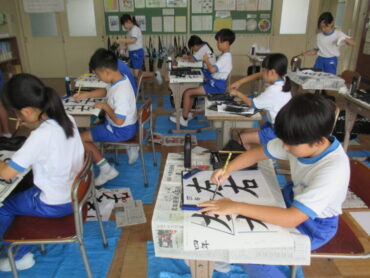 4年生は、書写の時間、姿勢よく集中して取り組んでいました。
