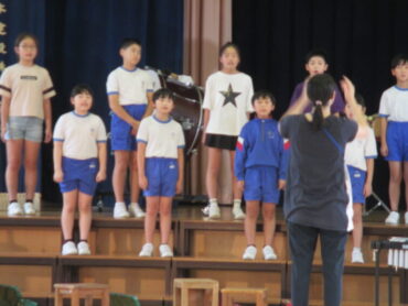 体育館からとても美しい歌声が聞こえてきたので、行ってみると、4、5年生が合唱の練習をしていました。18名の歌声が一つになって聞こえるようになってきました。見てくださる人たちに感動を伝えるために、一人一人がもっと表情豊かに歌えるとよいですね。