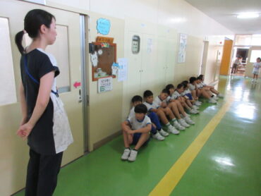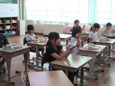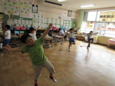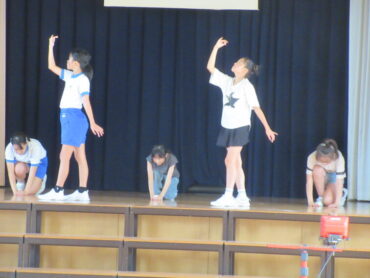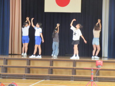 同じように3年生教室を見てみると、食べ終わった子供たちが踊りの練習に取り組んでいました。休み時間になっても真剣に取り組んでいました。