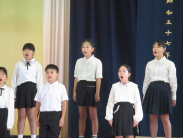 4年生は、学習発表会に向けて衣装を身に付けて、練習に取り組んでいました。練習が終わったときに、子供たちは、まだ70%から80%の出来だと言っていました。本番まで、まだできることがあると答える子供たち。さらによい合唱や合奏を目指して頑張りたいと意気込んでいました。