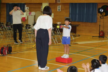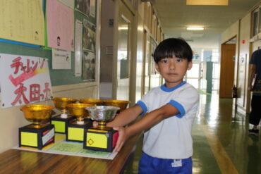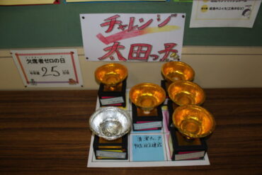 9月25日(木)、全体練習の最後に、運営委員会主催のミニ集会を行いました。チャレンジ太田っ子6つ目運営委員会の「安全チェック90%達成」のトロフィーを授与しました。廊下を走らずに安全に歩けたというチェックが95%を達成しました。
