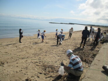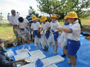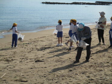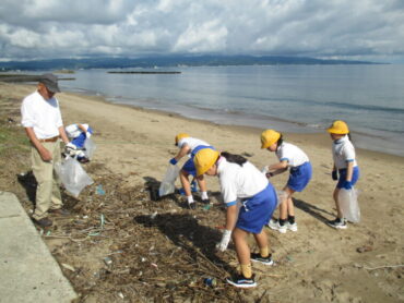 子供たちは、松太枝浜へ行き、2区画に仕切られた場所を2班に分かれて漂着物を拾いました。