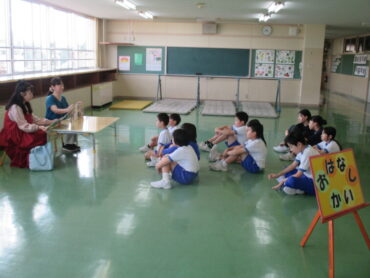 2025.9.26 1年生 2年生 3年生 5年生 6年生 お話会 9月26日(金)、4回目のお話会を行いました。今日のテーマは、「世界のむかしばなし」でした。 「さんねん峠」(朝鮮の昔話)「スーホの白い馬」(モンゴル民話)「とらとほしがき」(韓国の昔話)「なんでもふたつ」(中国の昔話)を読んでいただきました。 【さんねん峠】 【スーホの白い馬】 【とらとほしがき】 【なんでもふたつ】