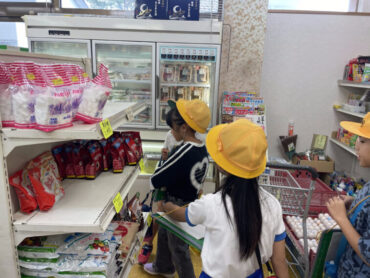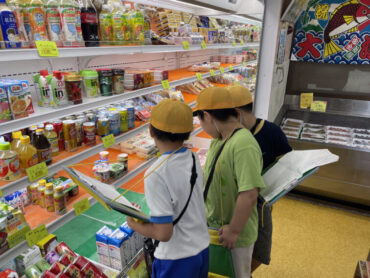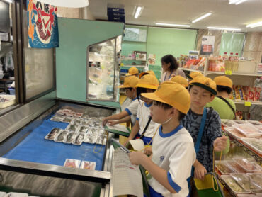 子供たちは、太田小学校の先輩でもある3代目の店主に話を聞き、毎日、お年寄りを中心に約100人のお客さんが来店すると聞いて驚いていました。また、遠くに買い物に行けないお年寄りのために、魚の切り身や総菜、お菓子、日用品等の多くの品物が店頭に並んでいることを知りました。さらに、「地域の人のために働いていきたい」と話されたことが子供たちの心に残ったようです。夏休みにクーラーが壊れて、よく「かなば」に涼みに来ていた子供は、「『かなば』は家族みたいな存在だ」と話していました。