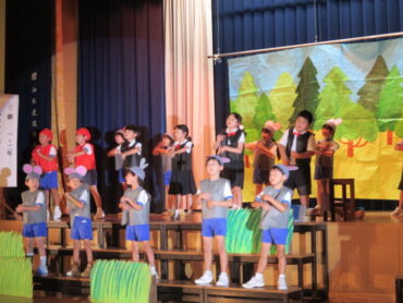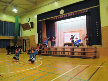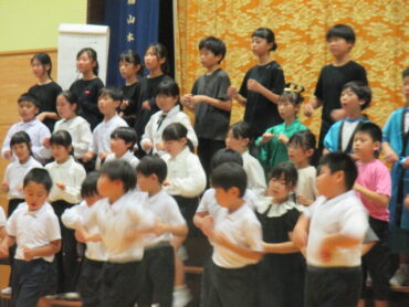 子供たちは真剣な表情でステージを鑑賞していました。また、手拍子を打って一緒に楽しんだり、大きな声で堂々と発表する友達の姿を見て笑顔になったりしていました。