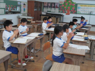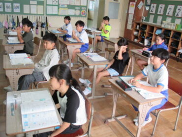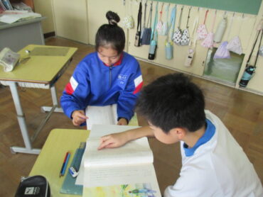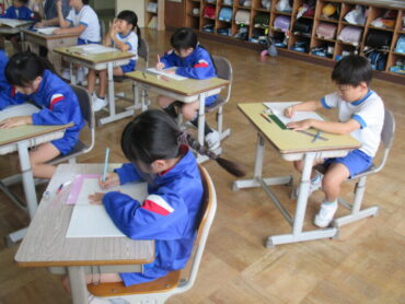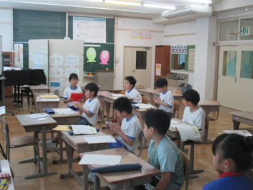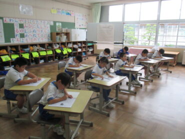 2年生は、国語の時間でした。「なかまのことばとかん字をたしかめよう」という課題で、教科の言葉を集めていました。習った漢字を思い出すのに少し時間がかかるようです。家庭学習では、新出漢字を使った言葉をたくさん見付けて書くこともできそうですね。