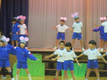 1、2年生は、子供たちの立ち位置を確認して、練習に取り組んでいました。