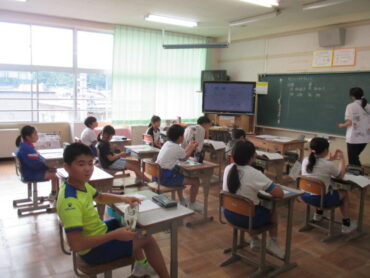4年生は、算数の時間でした。比べ方を考えていました。「20cmのAの包帯は40㎝に伸び、10㎝のBの包帯は30㎝に伸びます。よく伸びたのはどちらの包帯か」という問題でした。子供たちは、伸びたのはどちらも20㎝だけど、最初の長さが違うから何倍伸びたかを比べる必要があることに少しずぐ気付いていきました。
