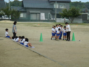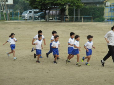 1、2年生は、体育の時間に、次の行事である浜っ子マラソン大会に向けて練習を開始していました。1、2年生は、1000mに挑戦します。今日は、1周200mのトラックを1周×2回走りました。2年生の子供たちは、1年生が走ているときに、「腕を大きく振るよ」「足を大きく出すよ」「最後まで頑張れ!」と昨年の経験を基に声をかけていました。「もっと走りたい」と言っている子供が多く、マラソンの練習を楽しんでいました。距離が長くなるほど苦しくなりますが、軽やかに走ってほしいものです。