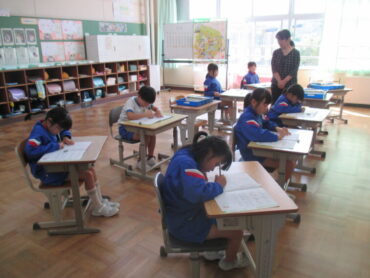 2年生は、書写の時間でした。姿勢よく、丁寧に文字を書いていました。