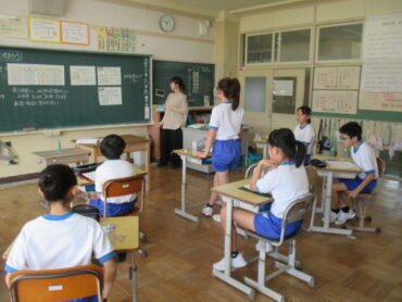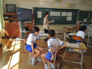 6年生は、外国語の時間でした。夏休みの思い出を英語で発表したり、友達のスピーチを聞いたりしていました。