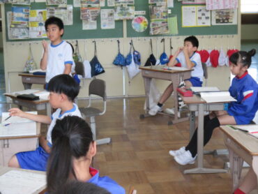 3年生も国語の時間でした。「ちいちゃんのかげおくり」の2場面と3場面について、出来事と失われたものについて出し合い、主人公の気持ちがどのように変化していったのかについて話し合っていました。