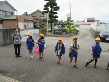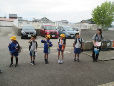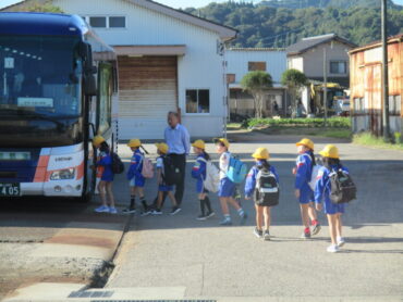 出発式では、学校長から「同じグループになった友達と仲よくして、一人でも多く名前を覚えてきてください」と言われ、元気に返事をしていました。バスの運転手さんにもしっかりと挨拶ができました。