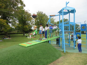 その後、水辺の広場でお弁当を食べ、遊具で遊びました。