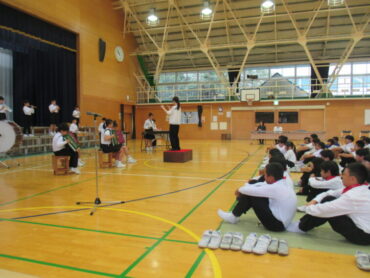 打楽器を担当した子供は、「古府小学校の合奏で、打楽器の人たちが上手だった。強弱のつけ方がすごくて、盛り上がりの表現ができていた」と自分と同じ楽器について感想を言っていました。また、自分たちもきれいな声で歌えたと満足気でした。