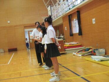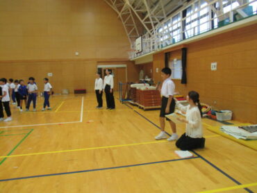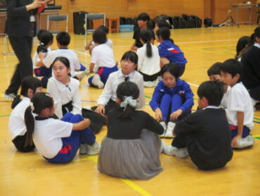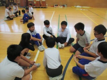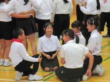 交流ゲームのときに、「好きなことは、いやさ~です」と祭りのかけ声が聞こえると、あちらこちらで「いやさ~いやさ~」とかけ声がかかるお祭り好きな子供たちの様子に圧倒されている子供もいました。
