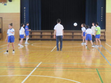 5、6年生は、朝の時間を使ってソフトバレーの練習をしていました。グループで円陣パスをしたり、アタックしたボールをとる練習をしたり、子供たちは、朝から声を出して楽しそうに活動をしていました。また、以前よりグループでのかけ声が多く聞かれるようになりました。