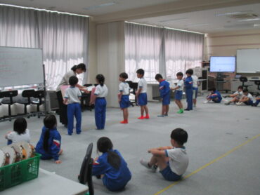 1、2年生は、10月23日(木)の雨晴苑訪問での出し物の練習に取り組んでいました。学習発表会で踊った踊りに、太田小学校のキャラクター紹介を加えて、お年寄りの方々に元気を届けようと、元気な声を出して練習していました。
