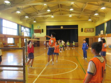 5、6年生は、体育の時間でした。どんどん上達するソフトバレー!アタックをする前にボールをキャッチすることを取り入れ、三段攻撃をすることもできるようになりました。ブロックにも果敢にチャレンジしています。