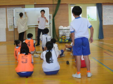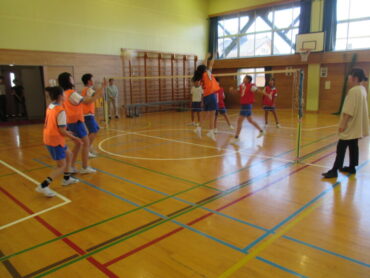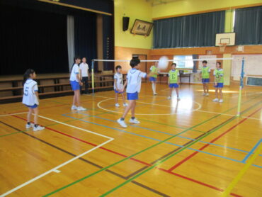 このソフトバレーの学習は、全員が楽しく活動することやチームのために貢献することがねらいです。運動が苦手な子供たちも楽しかった!と満足できるように、5、6年みんなで知恵を出し合ってルールを考えて活動してほしいものです。