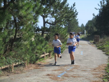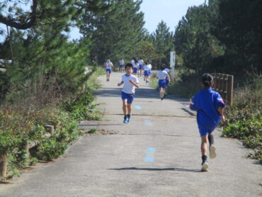 3、4年生は、浜っ子マラソン大会の会場である松太枝浜に行き、練習をしました。とてもよい天気に恵まれ、練習日和でした。