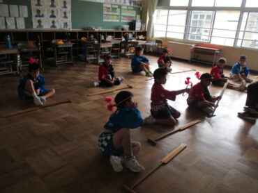 早めに集合した子供たちは、教室で最後の練習をして気持ちを整えました。