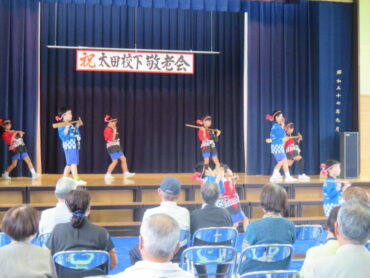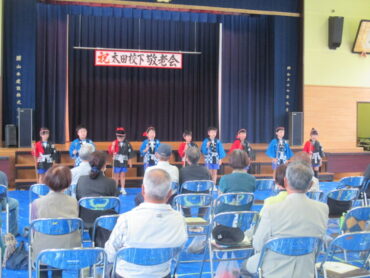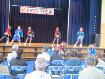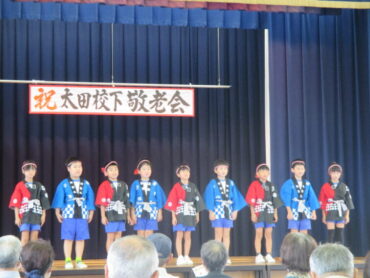 10月18日(土)、太田校下の敬老会が行われました。3年生は、敬老会で「雨晴音頭」と「帆柱起こし祝い唄」を披露させていただきました。