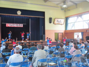 いよいよ3年生のステージが始まりました。敬老会に集まったみなさんに元気が届けられるように、そして、日頃の感謝の気持ちを込めて踊っていました。