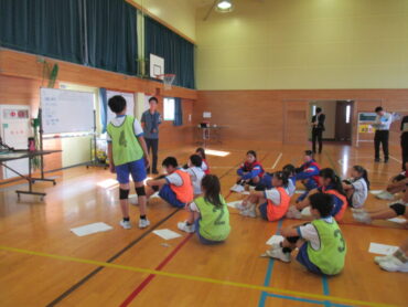 5、6年生は、体育の学習でした。今日は、講師の先生をお迎えして、体育の授業を見ていただき、先生方の研修会を行いました。