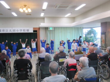 10月23日(木)、1、2年生は、太田地区にある特別養護老人ホーム「雨晴苑」を訪問しました。