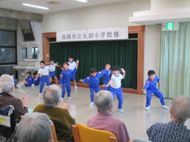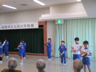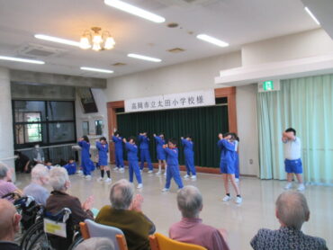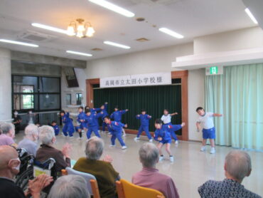 雨晴苑のみなさんは、「あら、もう終わり?」「上手やったよ!」「また来てね!」と声をかけてくださいました。子供たちの元気が、お年寄りのみなさんに笑顔を運んだと思います。