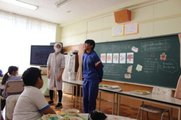 からだ委員会の子供たちが、食事のマナーや給食に関するクイズを出題してくれました。