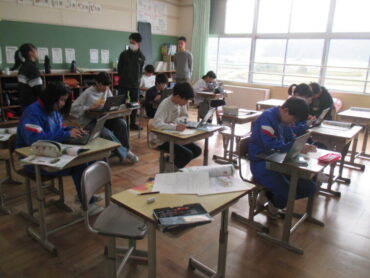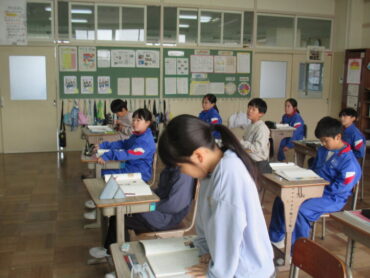 5年生も国語の時間でした。説明文「固有種が教えてくれること」の文章構成を考え、大まかな内容を捉えていました。