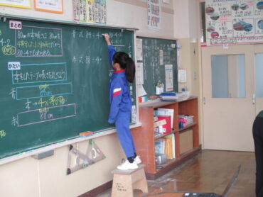3年生は、算数の時間でした。80㎝の4分の1の長さについて考えていました。その後、84㎝と88㎝をそれぞれ4分の1にした長さを求めていました。