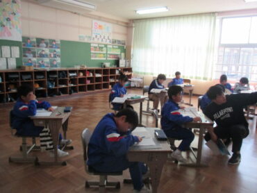 3年生は、国語の時間でした。「すがたをかえる大豆」を初めて読んだ感想を書いていました。初めて学んだことや疑問に思ったこと、もっと知りたいこと、文章の書き方の工夫等、どのような感想をもったのでしょうか。