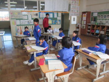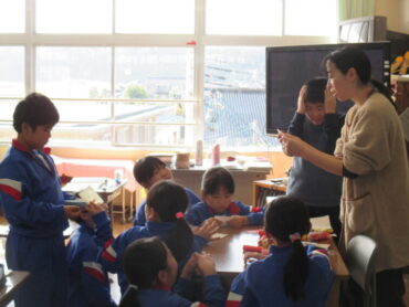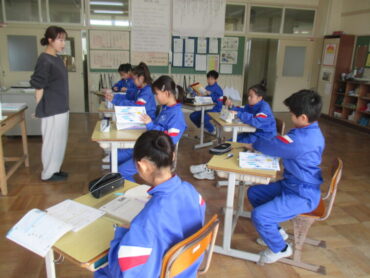 4年生も国語の時間でした。「未来につなぐ工芸品」の学習で、富山県の工芸品の材料である和紙を実際に触りながら、工芸品のよさについて考えていました。