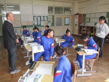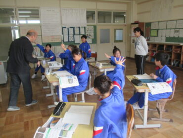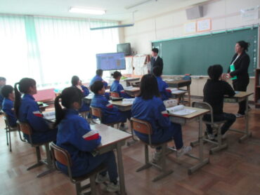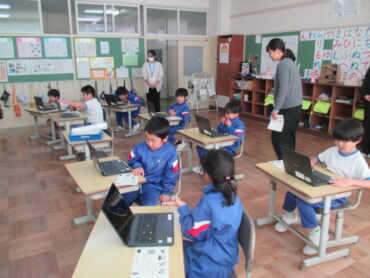 1年生は、先週の「ファイア・パーク太田」の振り返りをした後、学習専用端末でアンケートを入力していました。QRコードを読み取り、先生と一緒に入力しました。