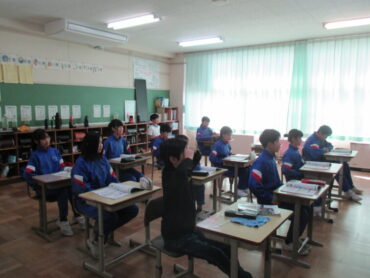 6年生は、外国語の時間でした。今日は、卒業アルバム用の写真を撮りにカメラマンさんが来校していたこともあってか、いつも以上に姿勢のよい子供たちでした。