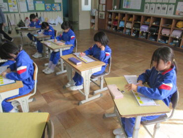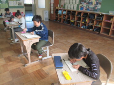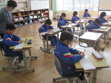 2年生は、いろいろな基礎学習の時間でした。新出漢字を学習した後、よい姿勢で漢字ドリルに取り組み、百ます計算、文章問題のプリント、本の借りかえ、読書と自分のペースで学習を進めていました。