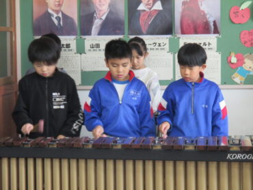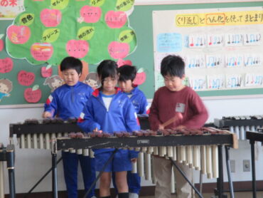 3年生は、音楽の時間でした。合奏曲「ゆかいな木きん」を2拍子にのって演奏するために、全員で木琴のパートを練習していました。