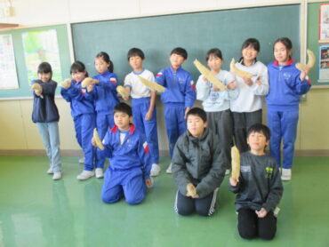 4年生は、収穫したヘチマをみんなで分けていました。今年度は、本当にたくさんのヘチマを収穫することができました。