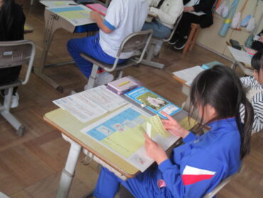「作り方を分かりやすく伝えるための工夫を見付けよう」という課題で学習を進めていました。子供たちは、まず、課題を書きました。書き終わった子供から音読をします。