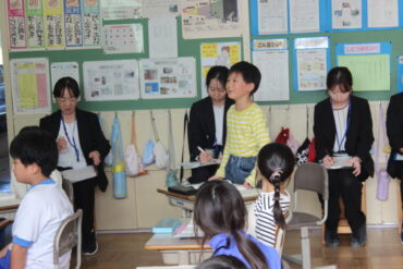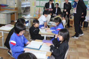 授業後は、講師の先生を交えて研修会を行いました。学習規律が整っていることやワークシートの工夫等成果や課題について話し合いました。講師の先生からは、教材研究や子供が問いをもち続け自ら学ぶ姿勢を育むための環境づくりいついて、たくさんのことを教えていただきました。子供たちの力を少しでも伸ばしていけるよう、私たち教師も問いをもち続け自ら学ぶ姿勢を大切にしていきたいと実感しました。