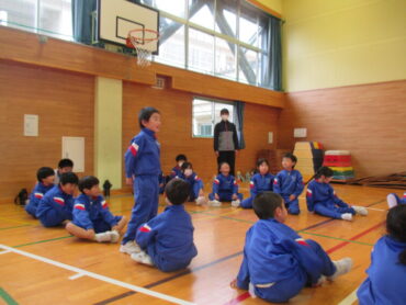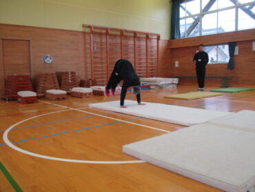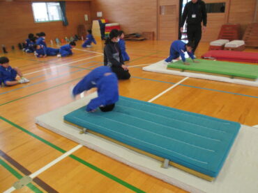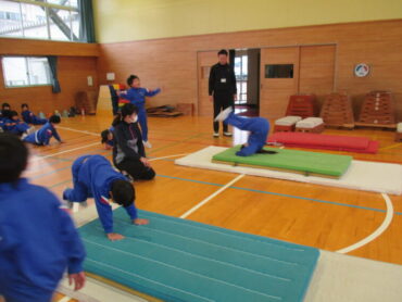 子供たちに「できた!」という感覚をつかませるよう、少しずつレベルを上げる指導法は、さすがでした。教えていただいたことを参考に、いろいろな動きを取り入れながらマット遊びや跳び箱遊びに取り組んでいきたいと思います。佐伯先生、楽しく教えてくださり、本当にありがとうございました。