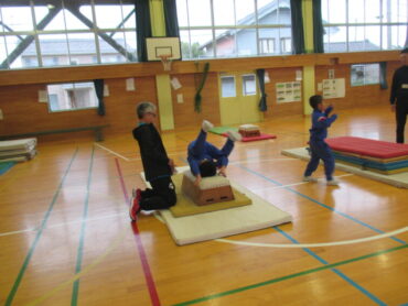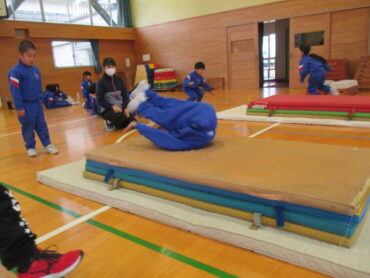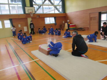 11月19日(水)、前回に引き続き、1・2年の体育で運動遊びアドバイザーの佐伯先生に2回目の指導をしていただきました。今回は、台上前転にチャレンジしました。今回も、子供たちは、スモールステップで活動に取り組みました。