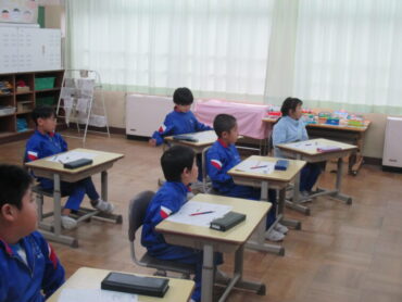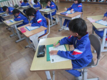 1年生は、算数の時間でした。これまでの学習をプリントで振り返りながら学習していました。