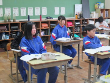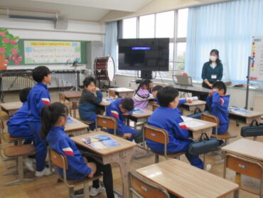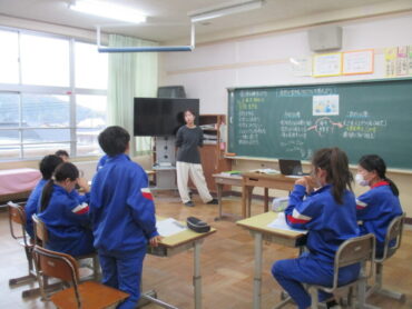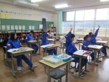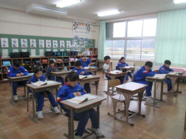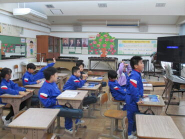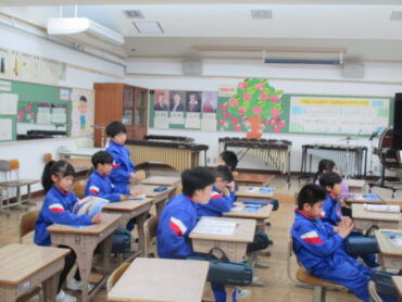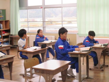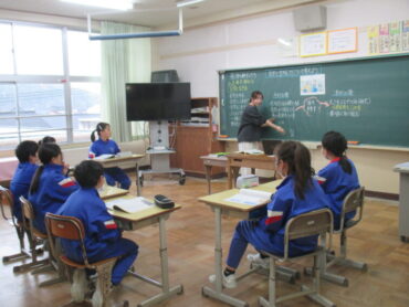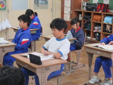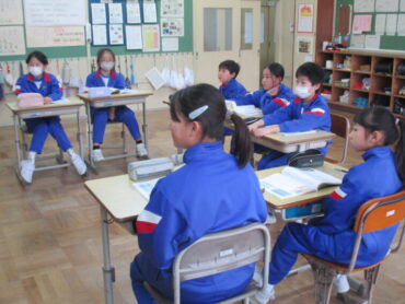 4年生は、道徳の時間でした。「一つの『青』にねがいをこめて」という教材をもとに学習を進めていました。この教材は、二つの小学校と二つの中学校が一つの小中学校として新しく開校し、その校歌を地域のみなさんに披露する際に、どのような意味や思いが込められているのかについて考えるという内容でした。これから統合を迎える子供たちには、自分事として考えることができる教材だと思います。子供たちはどんなことを考えたのでしょう。