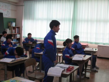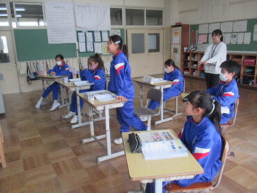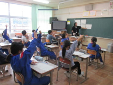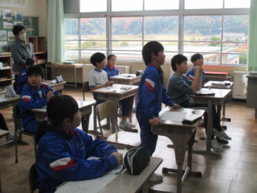 6年生は、国語「発見、日本文化のみりょく」の学習でした。日本文化に関する本を読んだことから、それぞれが興味をもったものについてそのよさを伝える文章を書く学習です。子供多たちは、着物や和食等について発表し合っていました。