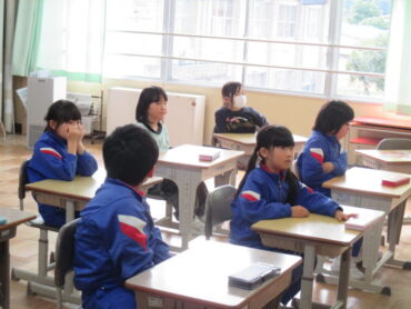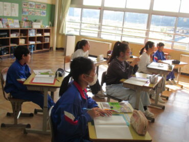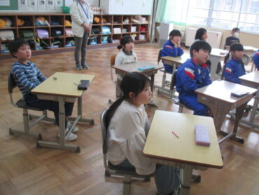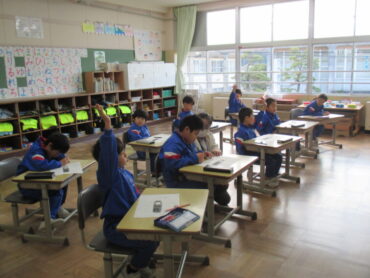 1年生は、国語の時間でした。「たぬきの糸車」の学習をしていました。たぬきがどうしていたずらをするのか、考えて発表していました。